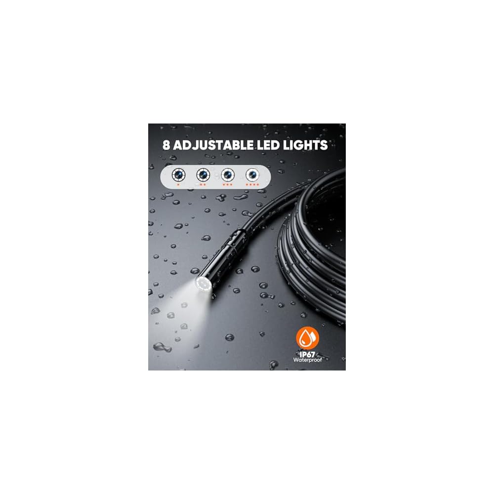 Answer: This endoscope is equipped with adjustable LED lights that illuminate dark areas, ensuring you can see what you're inspecting clearly. The built-in lights help reveal details that might otherwise be missed in low visibility conditions. This feature is particularly useful for plumbing work, vehicle maintenance, or any task that requires viewing inside confined spaces. -