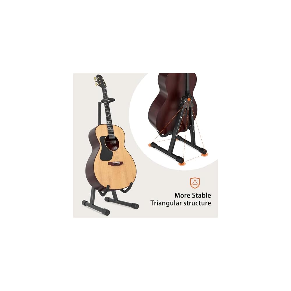 - Enhanced Stability: Built with a classic A-shape structure and add a guitar neck holder, this stand ensures superior stability on any surface. Your guitar stays securely in place, minimizing the risk of tipping or falling.