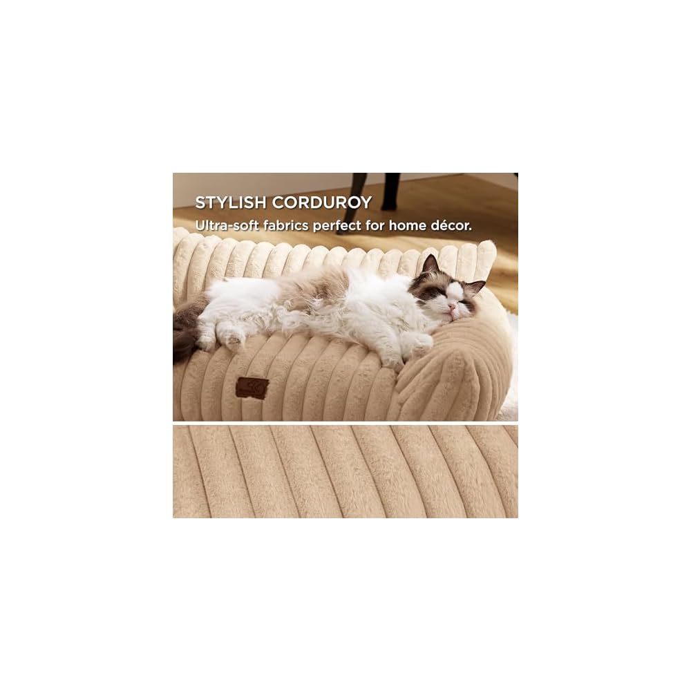 Answer: The Bedsure Cute Cat Couch features premium soft corduroy fleece, providing your pets with a luxurious and supportive surface to snuggle into. The high-quality materials are designed for durability while also offering exceptional comfort, ensuring that your furry friend can enjoy napping or lounging every day, making it an attractive and functional pet bed. -