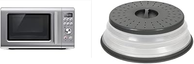 Breville BMO650SIL the Compact Wave Soft Close Countertop Microwave Oven, Silver & Tovolo - 81-31531 Vented Collapsible Microwave Splatter Proof Food Plate Cover, 10.5 Round, 10.5 inch, Charcoal